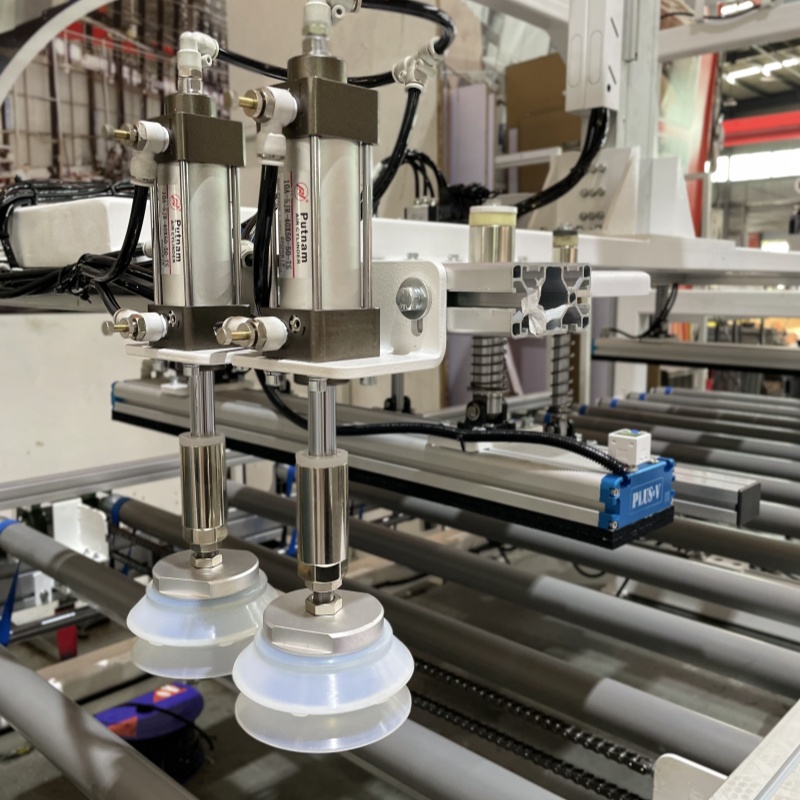 4. PRECKISE PUORAUS: Kun paneeli on toimitettu prosessointilaitteiden määritettyyn sijaintiin, imukupit vapauttavat tyhjiön lastausprosessin loppuun saattamiseksi. Samaan aikaan,